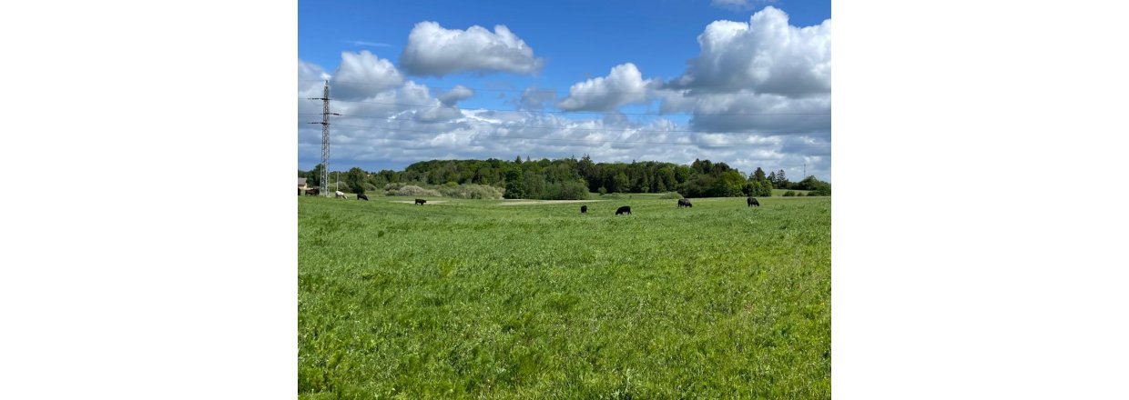 Jorden havde de sidste mange år været drevet konventionelt og var sået til med kornafgrøder. Derfor måtte vi hurtigt i gang med at så græs til vores kvæg og de heste, vi har privat. Vores jord er nu tilsået med græs med kløverudlæg, som binder kvælstoffet og giver næring til græsset. Det er samtidig og det er super godt foder til grise og køer.